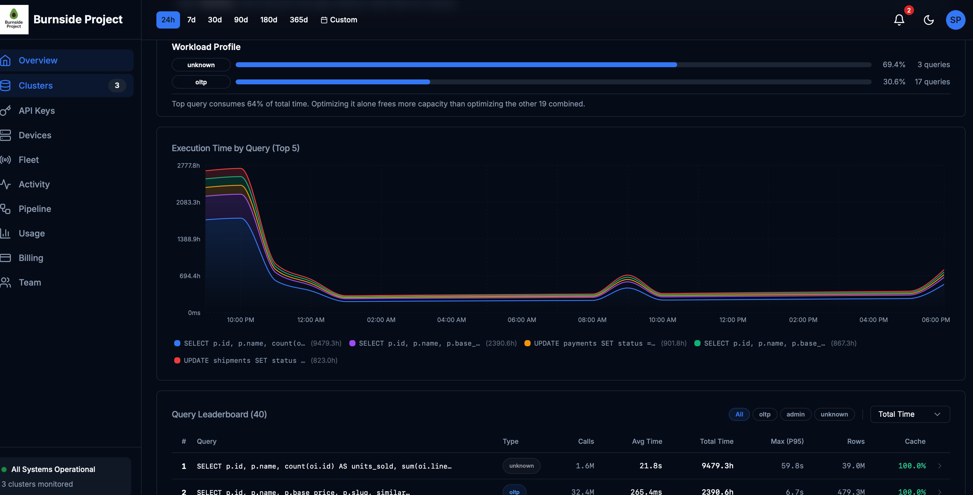 80/20 cost distribution across OLTP, analytics, and maintenance. Find the one query consuming 73% of your capacity.